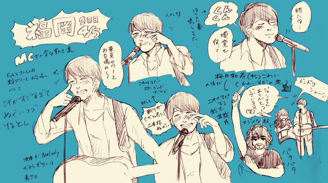 「歩くスピードはとぼとぼと」でテンポをぐんと落としたアレンジが素敵でした。さくらいさんの声が優しくて綺麗で照明もオレンジでもう…これがミスチルだったらどんなに…(;ω;)ウッ