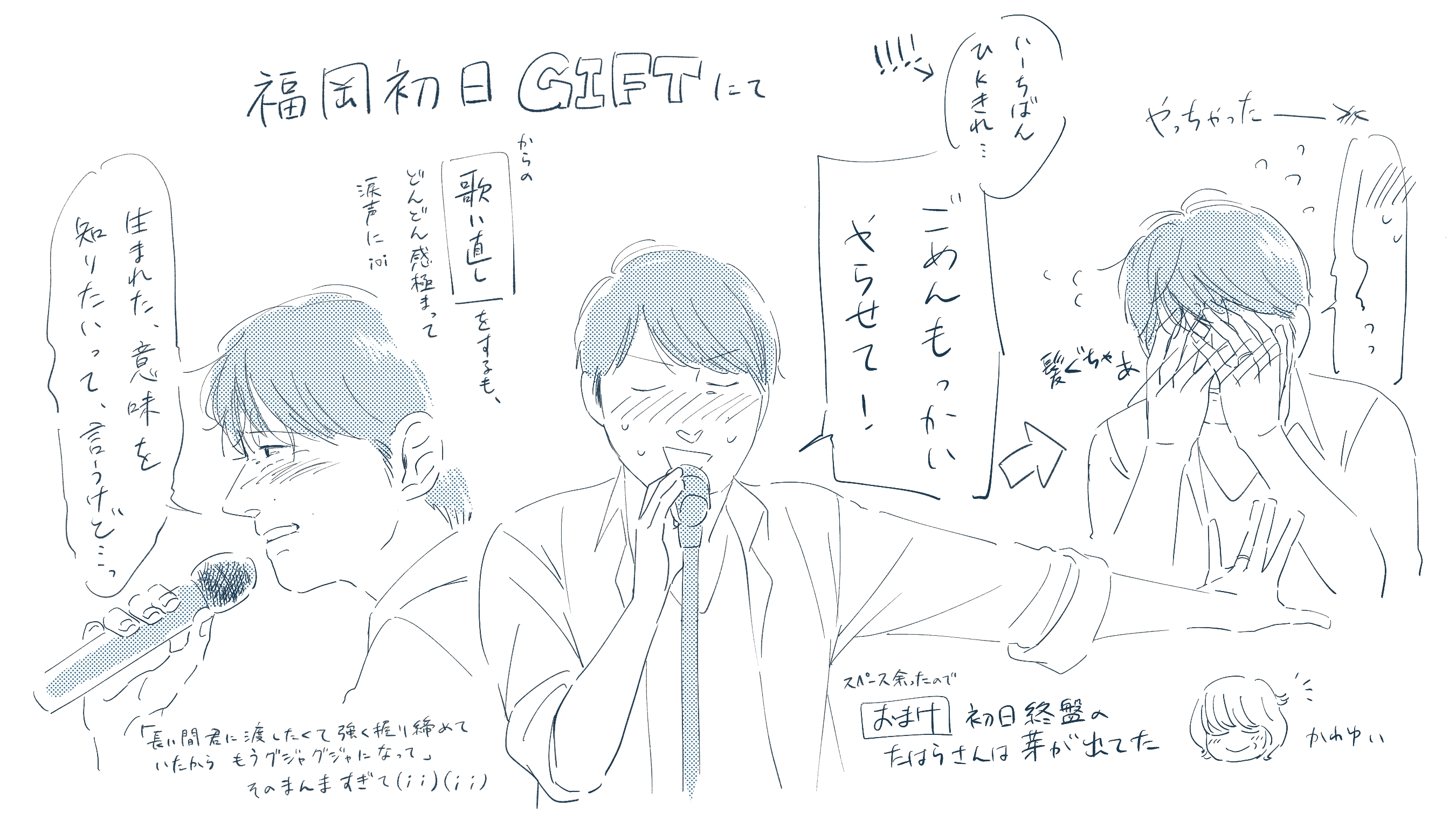 (照れ隠しみたいな、恥ずかしくて濁す感じ……愛しい……かわいい……;;)(省略した先は次の曲のMCに乗せてくれた感じがする)