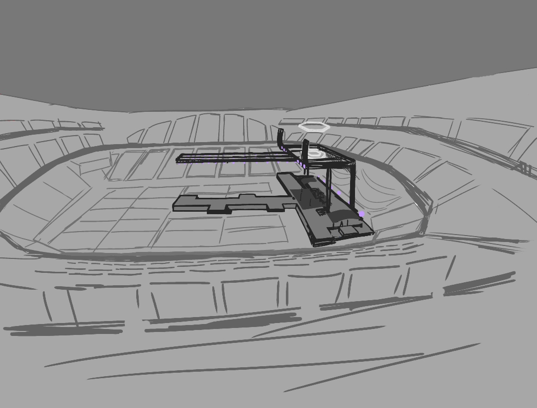 よく見ると、ヴェールを点で吊ってる球みたいな重しみたいなものがそれぞれ上下に動くようになってるんですね。動きとしてはニンジャーライト(GC行ったことある人は見たことがあると思う、自動制御で上下に動かせる発光する球のライト)に布括りつけて上下させてる感じがする……。でも括りつけたものは光ってないから、ほんとにニンジャーライトなら照明としては使わないと